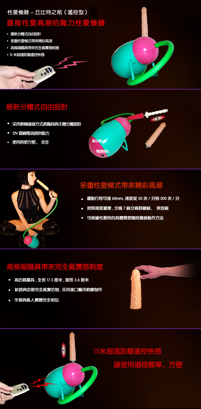 .商品內容:愛神之箭遙控七段變速全自動性愛機器*1