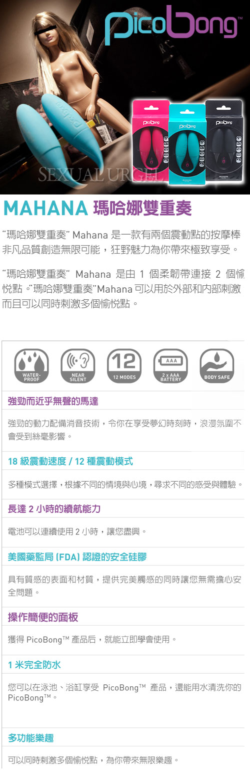 .主商品:瑞典PicoBong-MAHANA DUO VIBE瑪哈娜 雙震動G點按摩器-藍*1