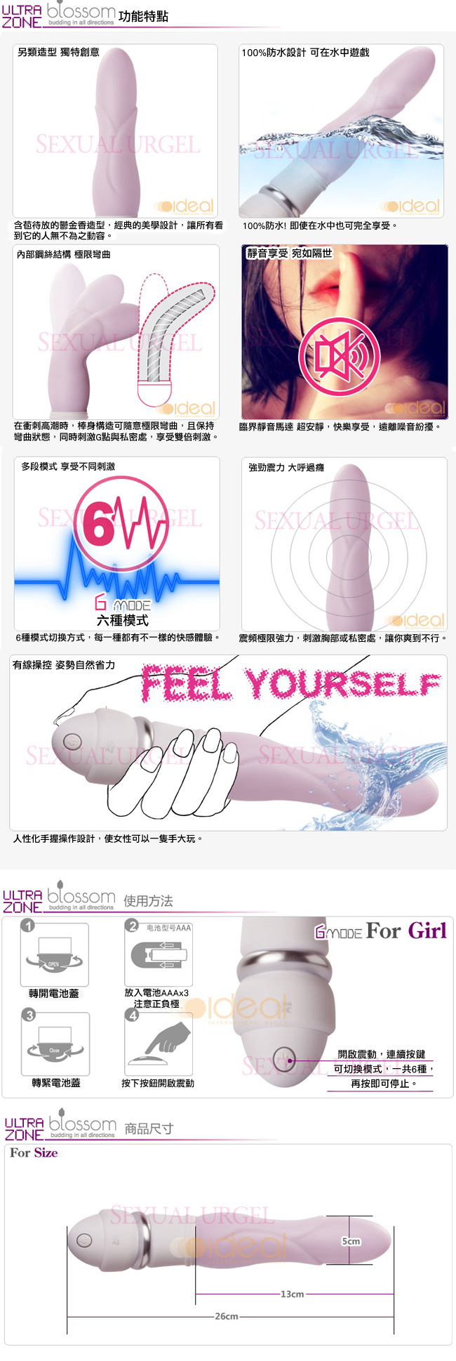 .商品名稱:美國Ultrazone-怒放丁香 Lilac 6頻可彎曲式按摩棒 *1