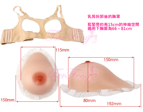 拆卸式設計,乳房與胸罩可分開,乳房周圍有足夠的魔鬼氈