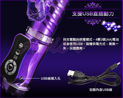 .主商品:雪豹突擊-電池/110V/USB 三用頂級多功能滾珠按摩棒-紫 *1