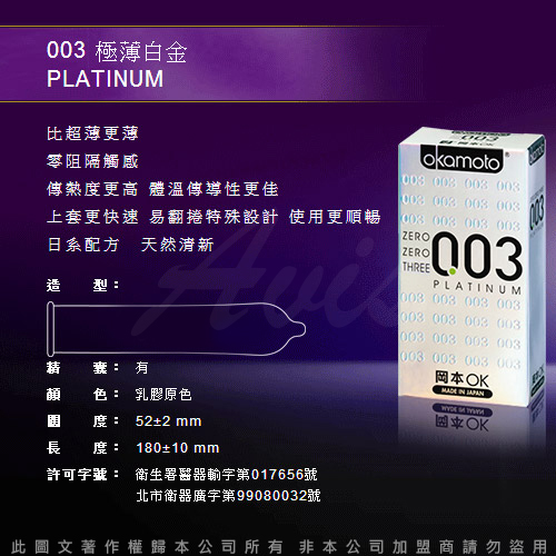 岡本003-PLATINUM 極薄保險套(6入裝)白金