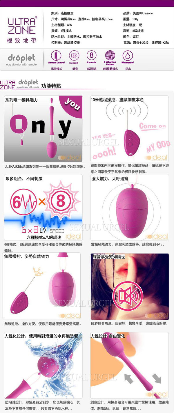 .主商品:美國 Ultrazone Droplet dew drop 夢幻滴露 創意變形 遙控跳蛋 紫紅x1