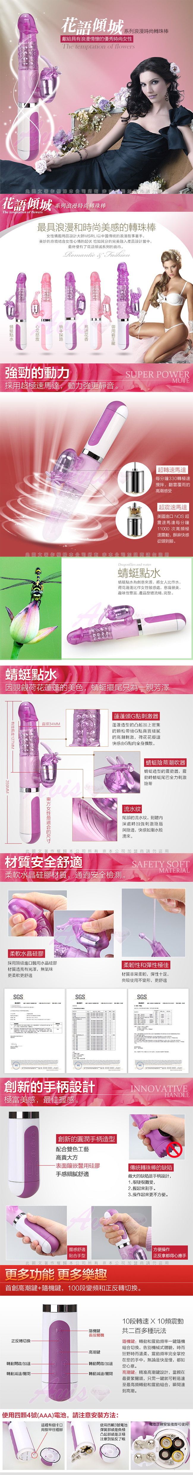 .商品:花語傾城系列-10x10段變頻防水轉珠G點按摩棒-蜻蜓點水 *1