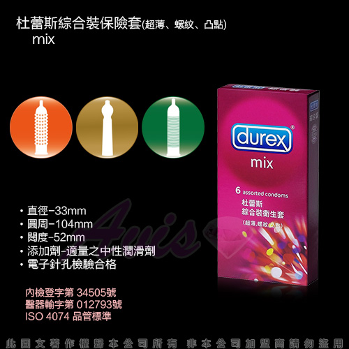 品名:Durex杜蕾斯-綜合裝 保險套(6入)(超薄+凸點+螺紋)