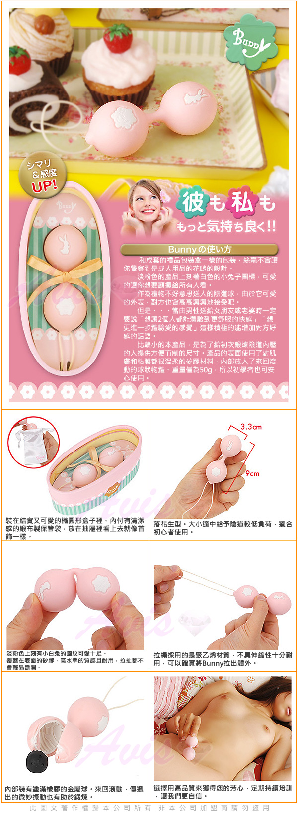 色彩繽紛的外在和光滑的表面是視覺和触覺上的享受。專利特殊設計讓它即使在跳動的狀態也是非常安靜。這些聰明的特色,讓聰明球球成為世界上最受歡迎的女性玩具,也是最讓男人迷惘、讓女人心跳加速的女性娛樂。 (不需使用電池)