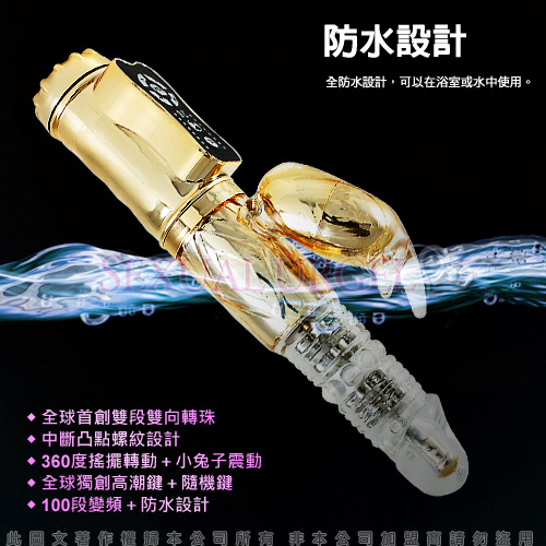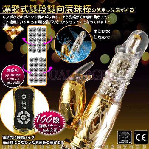 採蜜教主-100頻防水靜音潮吹雙向轉珠按摩棒-金