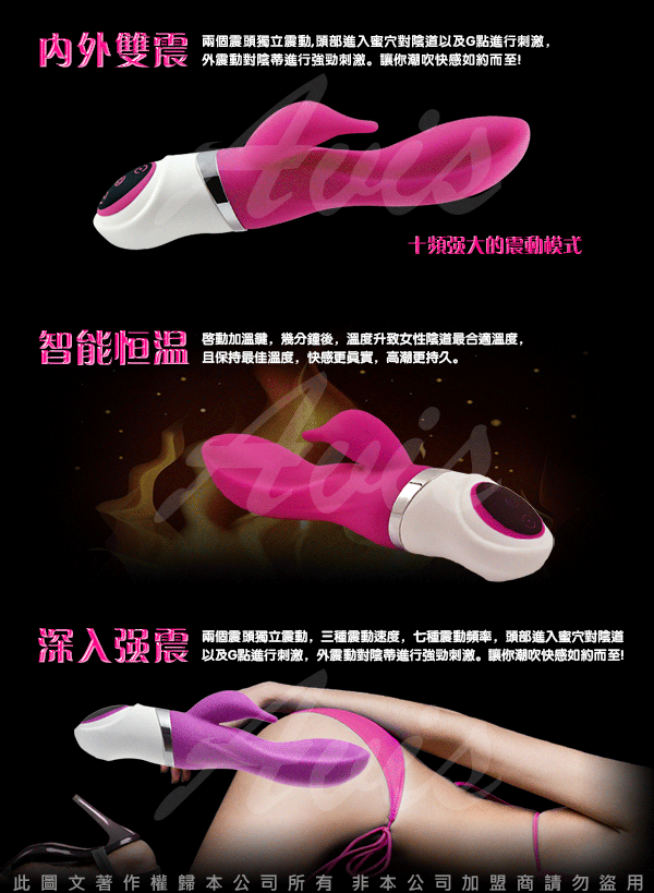 棒身的插入能精確刺激女性G點部位,內外雙震同時刺激,輕鬆引發高潮