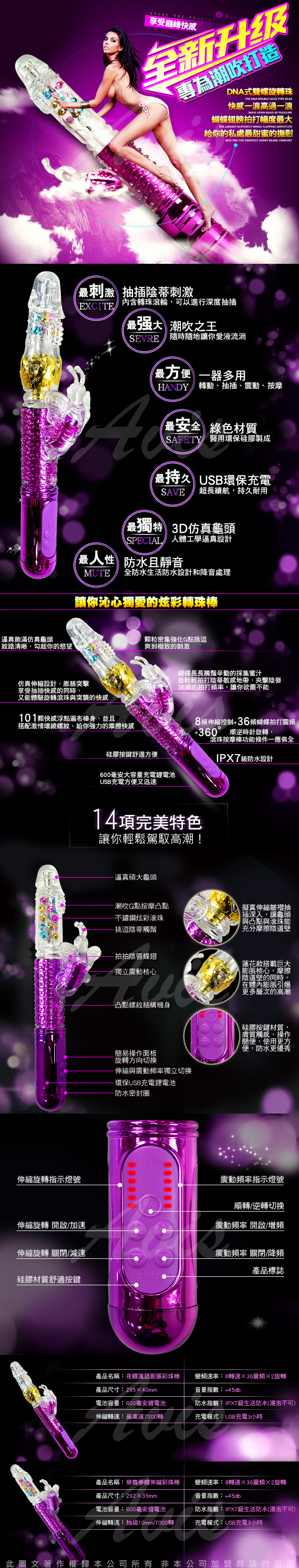 蓮動巧蝶 288段變頻式正逆轉膨脹伸縮USB充電轉珠棒 電鍍紫