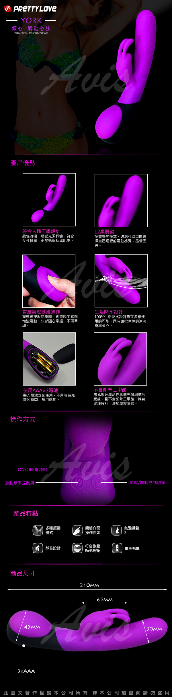 .主商品:YORK 約克 記憶功能+氣壓式感應12段變頻智慧按摩棒