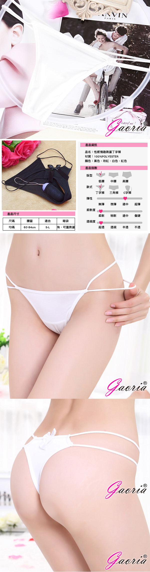 此系列小褲每件私密處均附有可裝跳蛋的同款袋子,彈性布料設計,大小蛋都合適,亦可裝保險套及各式私人物品,私密處的百寶袋,請盡情發揮您無限創意。