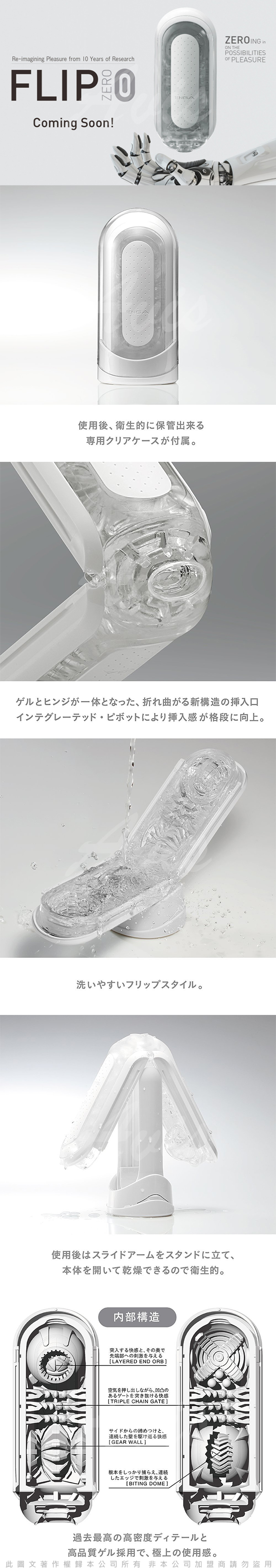 將人氣商品(TENGA FLIP HOLE)系列徹底改良,「FLIP ZERO」飛機杯被喻為是TENGA徹底改良的十年大作,除了將過去外型換成透明包裝外,太空感的設計造型,如同全新科技產品。