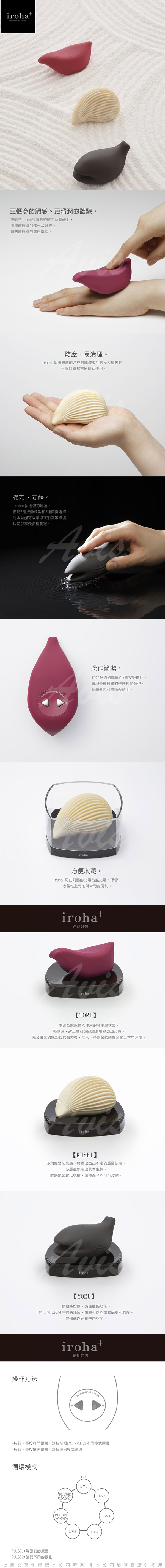 以可愛和風造型及柔軟手感作賣點的Iroha系列推出全新作品。採用軟觸感材料造,表面光滑且具細膩觸感。與肌膚配合度高,不會有黏膩或不自然的感覺 - 就像你的另一層肌膚。