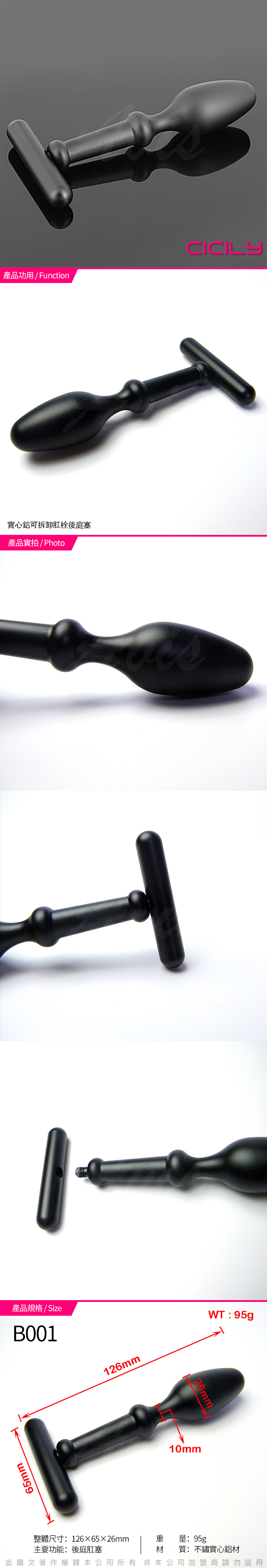 .商品名稱:CICILY 冷冽之愛 金屬寶後庭肛塞拉棒 黑