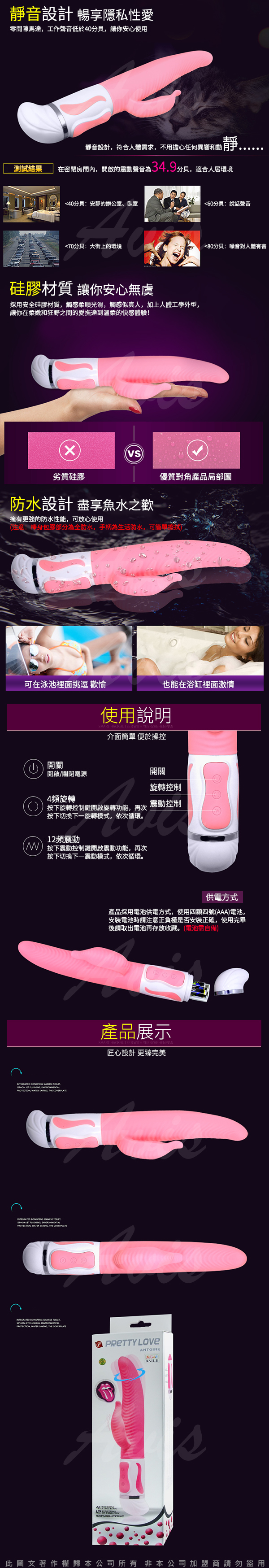 .商品名稱:PRETTY LOVE ANTOINE 靈動神舌 4旋+12震 防水舌型按摩棒