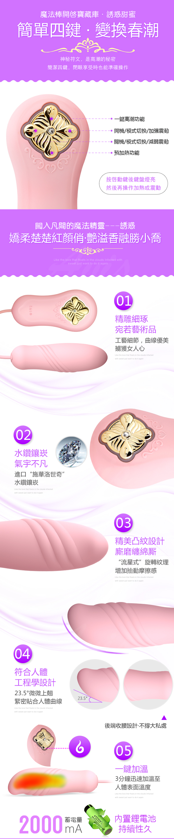 .商品名稱:法國ZALO 甜蜜魔法系列 Temptation 誘惑 可預熱自動抽插型跳蛋