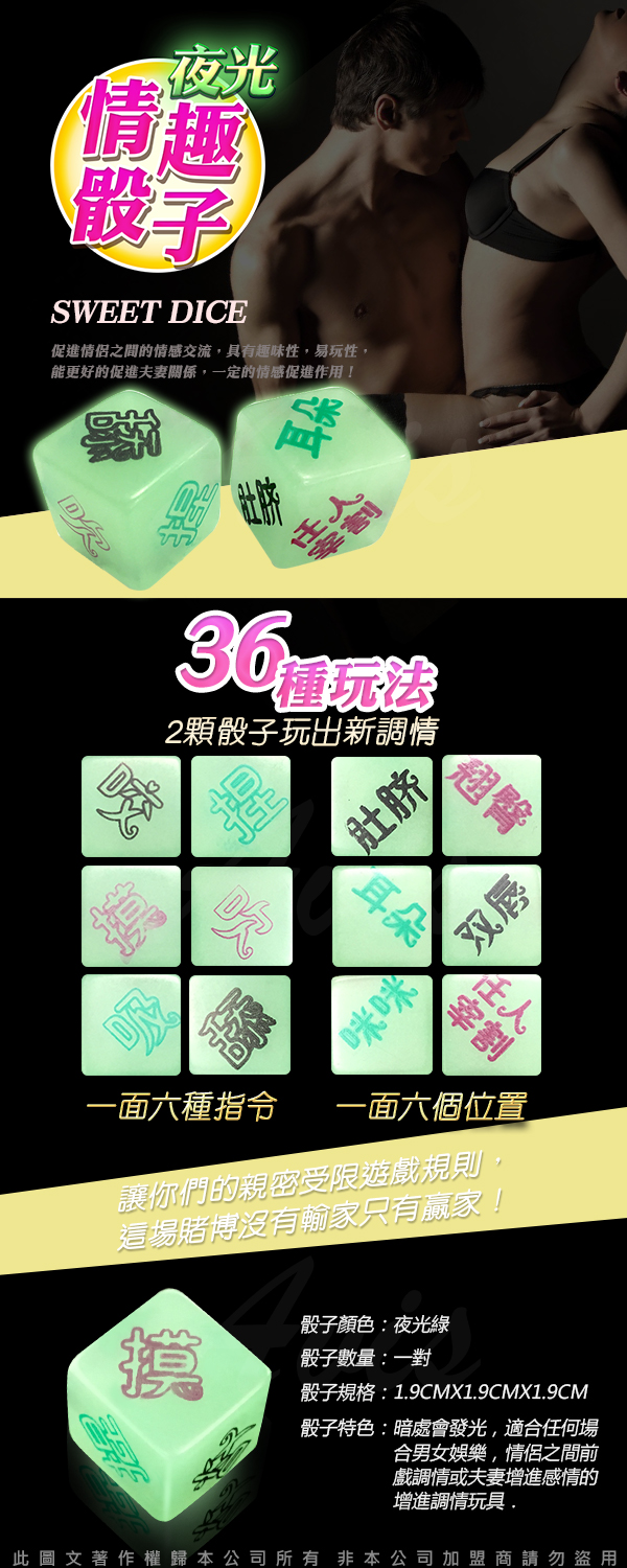 .商品名稱:夜光 情趣骰子 2入 情趣小遊戲 前戲調情必備 酒店遊戲