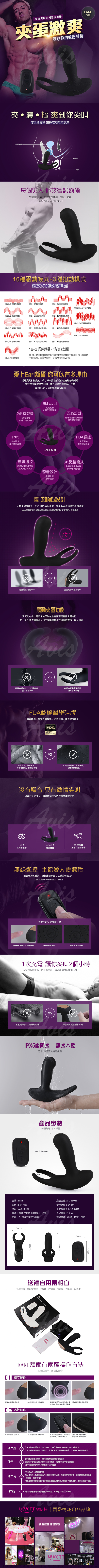 .商品內容:LEVETT 額爾 EARL 16+3變頻雙震動無線遙控前列腺後庭按摩器 黑