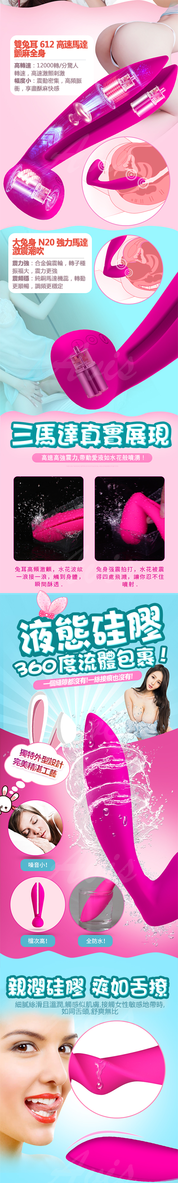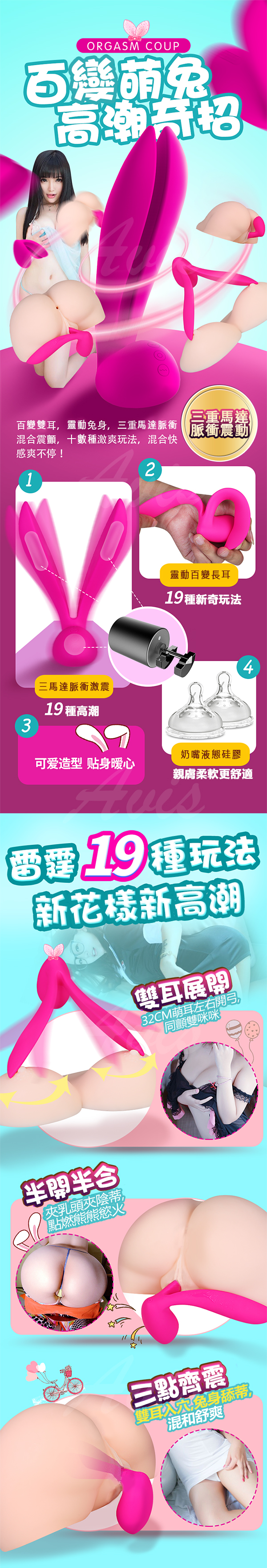 百變雙耳,靈動兔身,三重馬達脈衝,混和震顫,十數種激爽玩法,混合快感爽不停