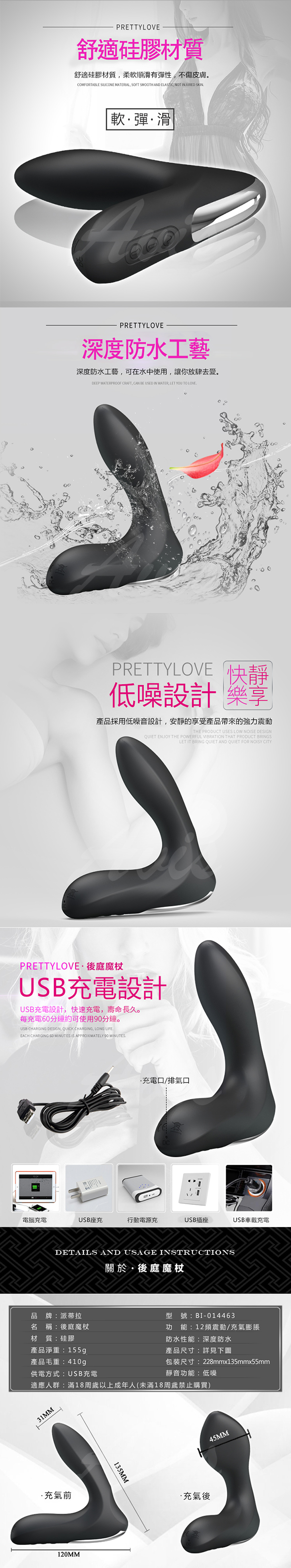 .主商品:PRETTY LOVE LEANARD 後庭魔杖 12段變頻頭部充氣震動矽膠按摩棒