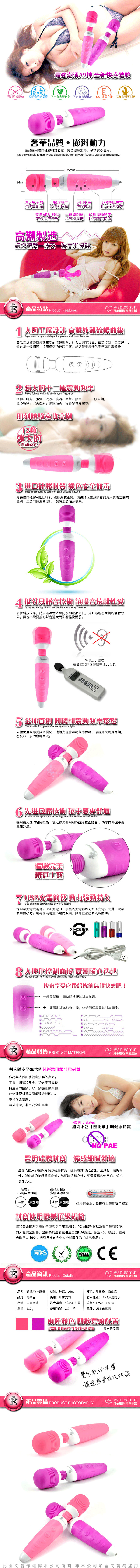 潮湧 12段變頻之超強AV女優棒,它大幅振動速度強烈刺激女性G點,提高性欲,做工精緻,讓人怦然心動,給予妳100%滿意。