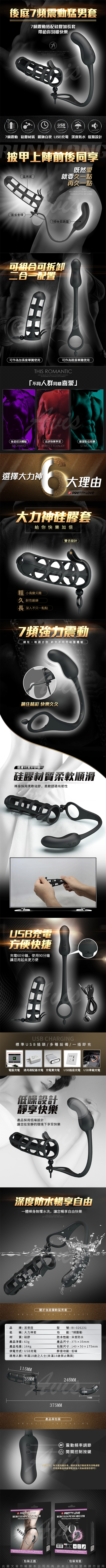 .商品名稱:PRETTY LOVE 大力神套 後庭7段變頻激情震動矽膠猛男套