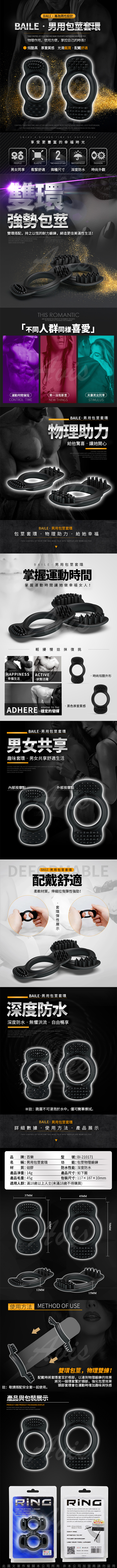 .商品名稱:BAILE RING 男鎖精 女刺激 性愛合歡輔助雙環 B