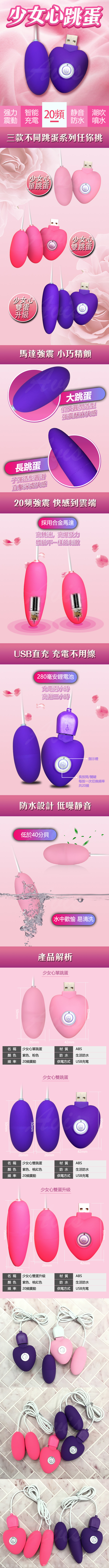 .主商品:少女心USB充電20頻升級長短雙跳蛋 紫