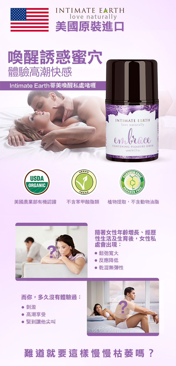 .商品內容:美國Intimate-Earth Tightening pleasure serum 喚醒誘惑蜜穴 30ml