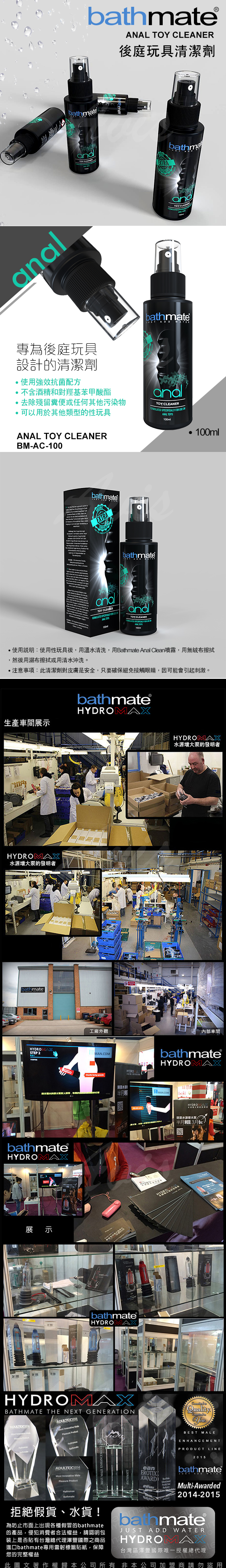 .商品內容:英國BATHMATE Anal Toy Cleaner後庭玩具清潔液 100ml BM-AC-100