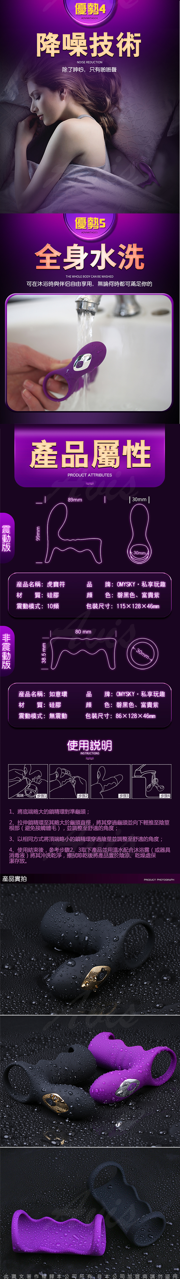 .商品名稱:omysky-虎賁符 雙震10段變頻柔軟矽膠鎖精環-紫色
