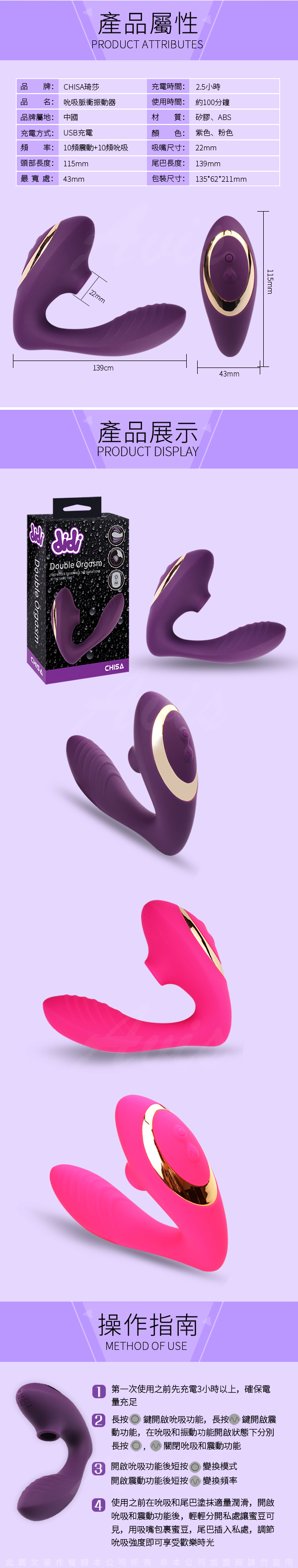 .商品名稱:CHISA-DIDI 夫妻互動 內外刺激 吸吮自慰按摩器