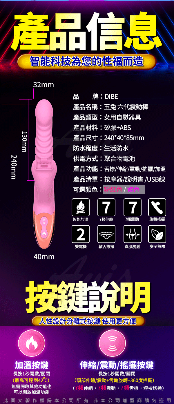 .商品功能:DIBE-玉兔旋風6代 自動震動+伸縮搖擺+加溫+舌舔 極品按摩棒