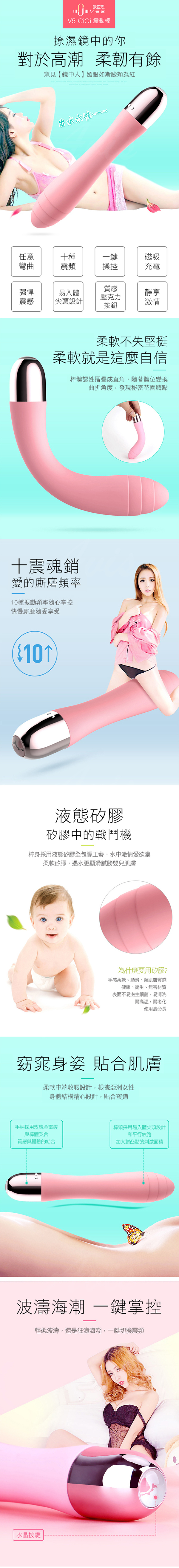 品名:WOWYES CiCi V5 10段變頻震動 磁吸充電震動矽膠按摩棒