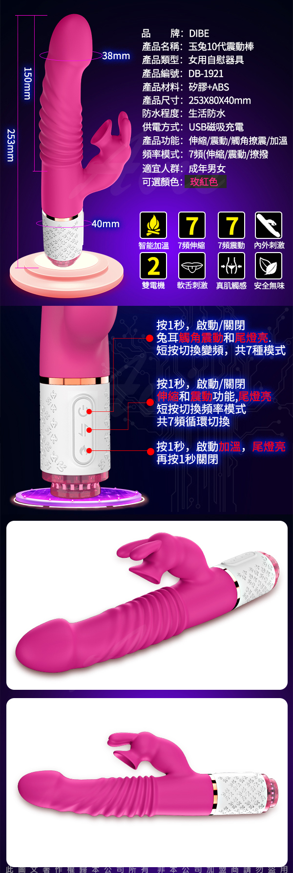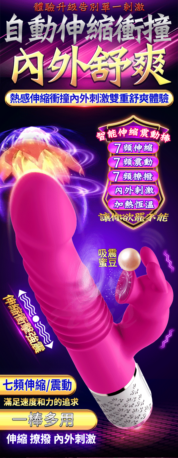 .商品名稱:Dibe-玉兔10代 七頻伸縮震動+吸吮 智能加溫 雙享激情按摩棒