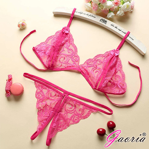 【Gaoria】誘惑天使 內衣+開檔褲 情趣內衣組 玫紅