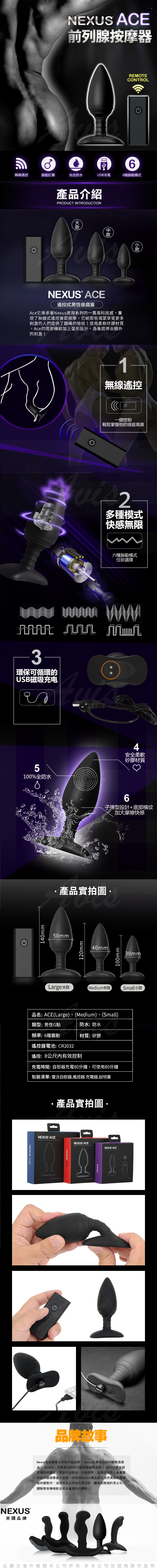 .主商品:英國NEXUS ACE 艾斯 全防水充電式無線遙控後庭塞 SMALL