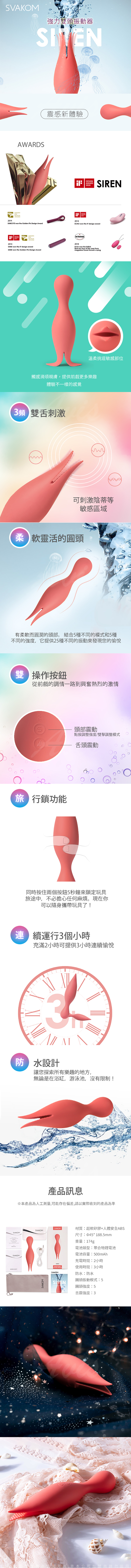 .主商品:美國SVAKOM Siren賽蓮 強力雙舌充電式振動按摩棒