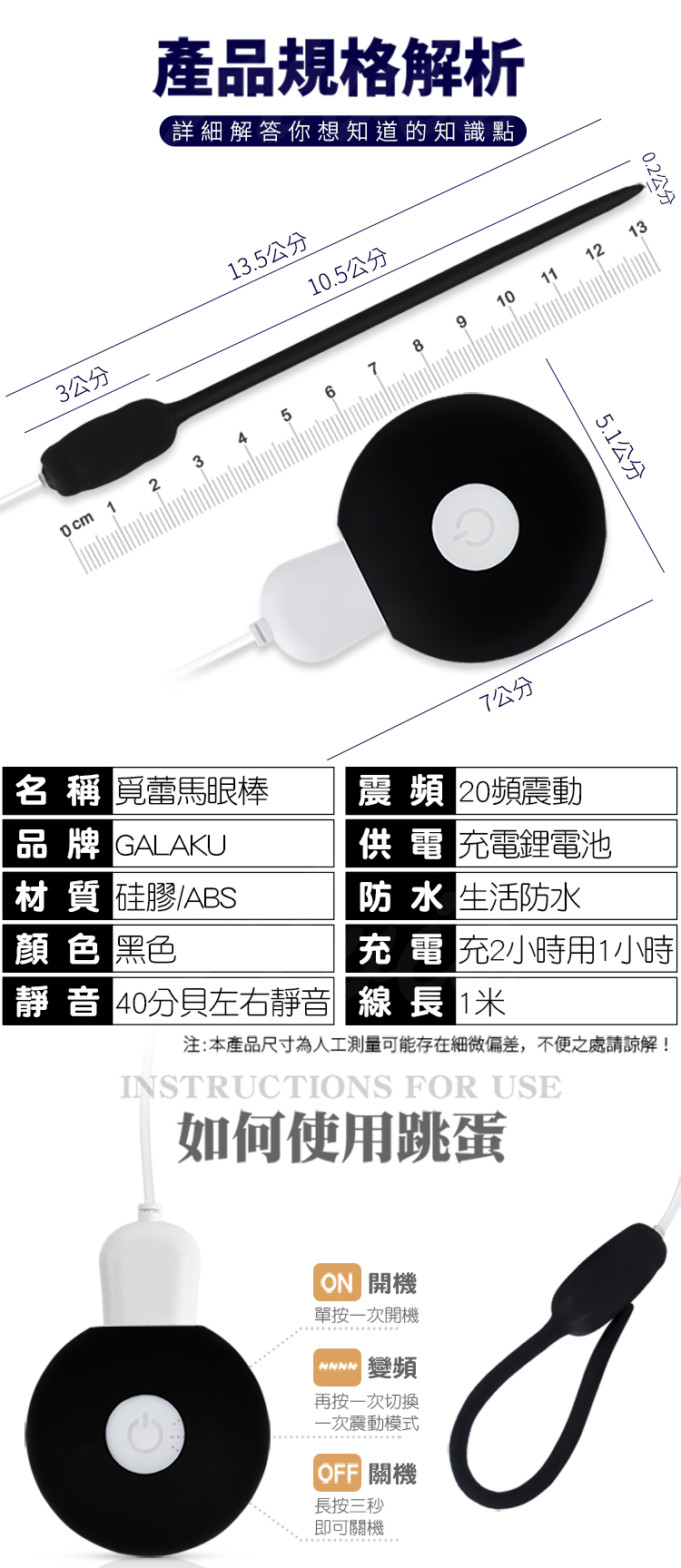 .主商品:GALAKU 覓蕾 20段變頻男用高潮馬眼棒-黑色