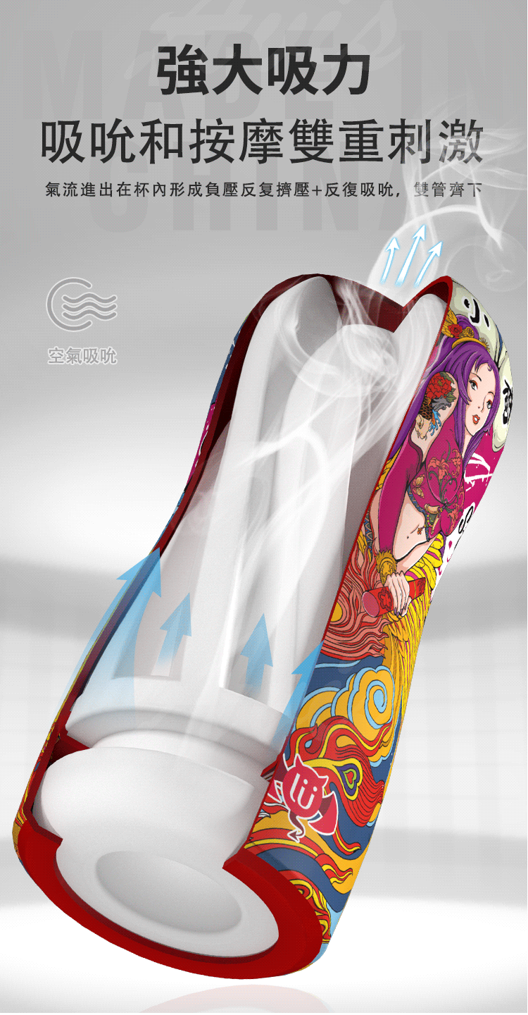 強大吸力吸吮按摩雙重刺激,氣流進出在杯內形成負壓反覆擠壓+反覆吸吮,雙管齊下