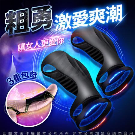 粗勇 三重鎖根矽膠鎖精環兩件組