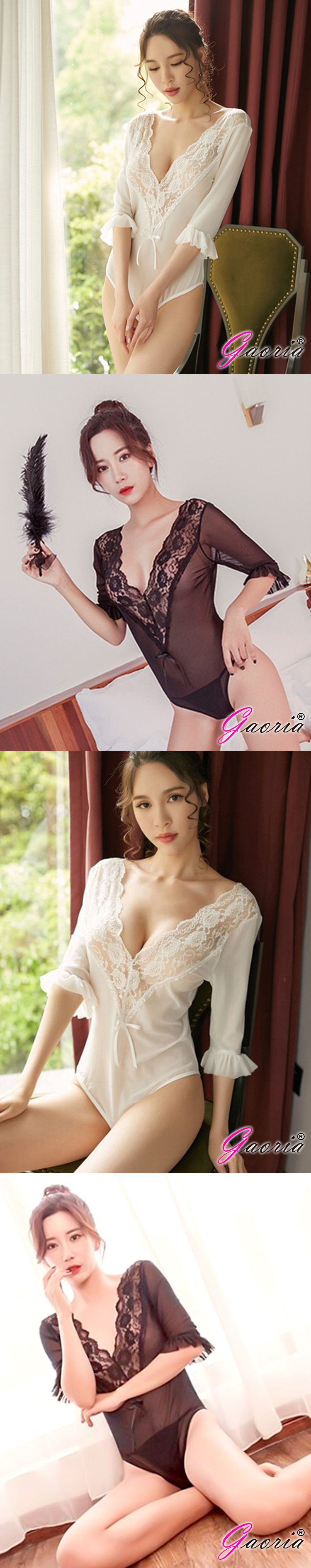 · 商品名稱:【Gaoria】巴黎浪漫 蕾絲長袖高衩連身 情趣睡衣 白