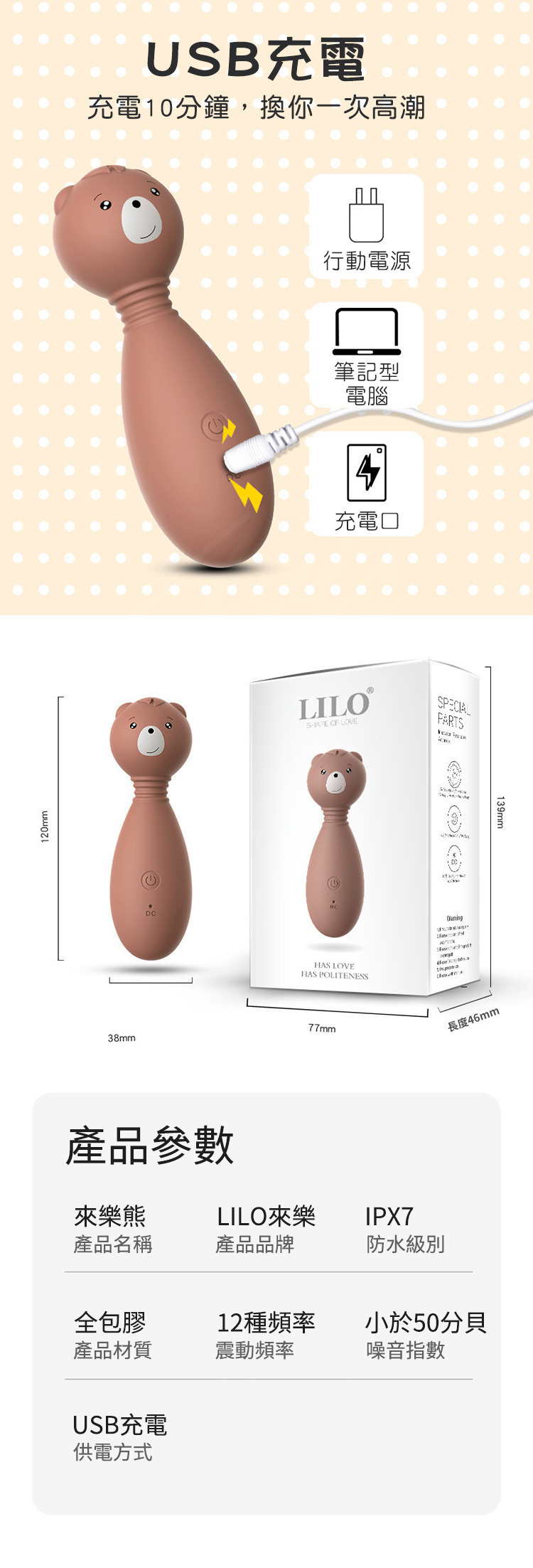 產品名稱:萌熊來襲 12段變頻震動柔軟材質矽膠按摩棒