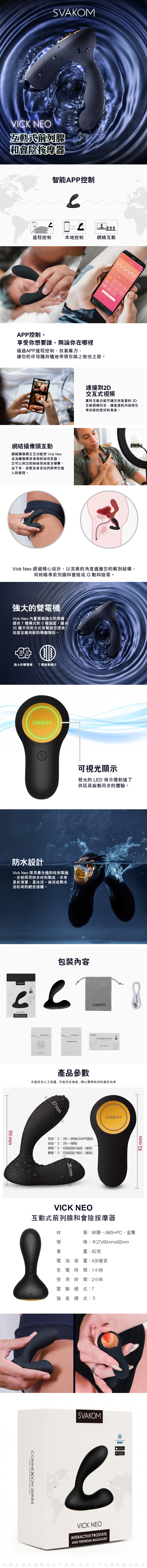 產品名稱:美國SVAKOM Vick Neo 後庭前列腺按摩器 智能遙控版