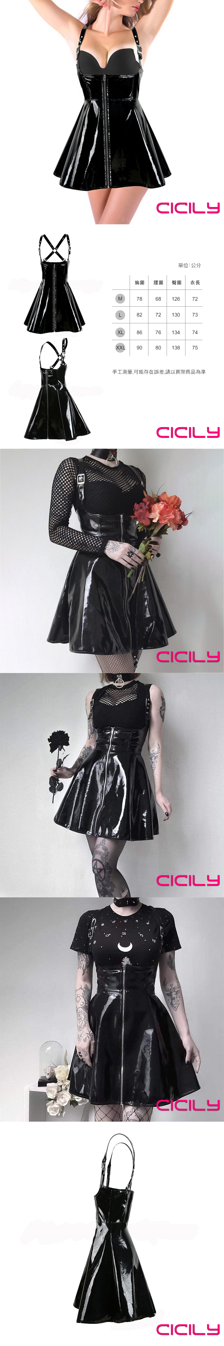 CICILY 誘惑天使 背帶漆皮短裙服裝 漆皮膠衣 黑 L
