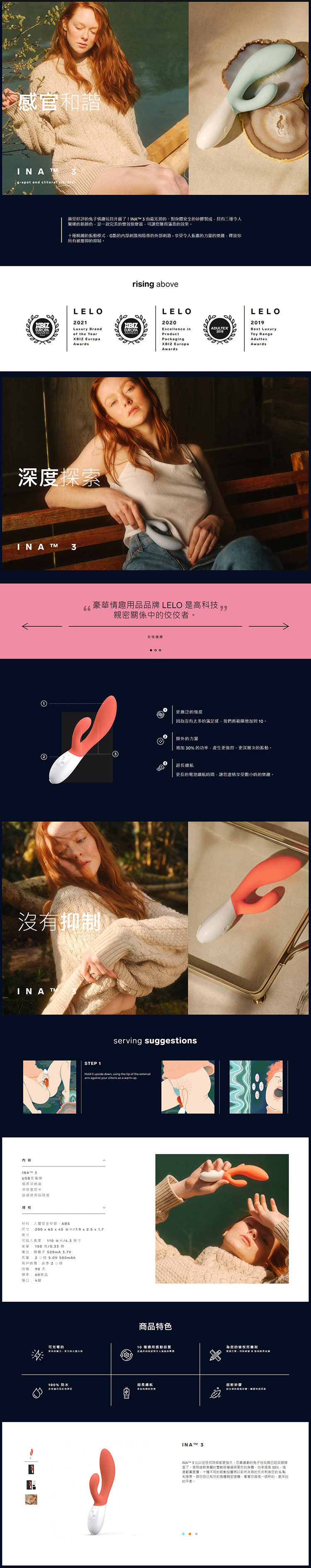 LELO INA 3 多功能雙震動按摩棒 珊瑚紅