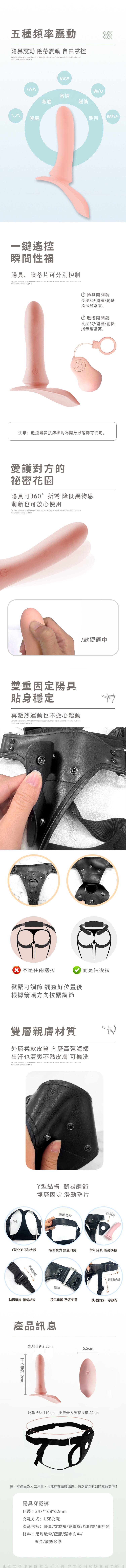 產品包括:陽具/穿戴褲/充電線/說明書/遙控器
