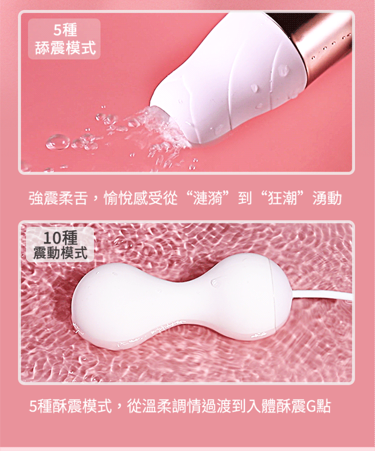 WOWYES-玫瑰花舌 5x10段變頻吸吮舌震共歡縮陰球震動跳蛋
