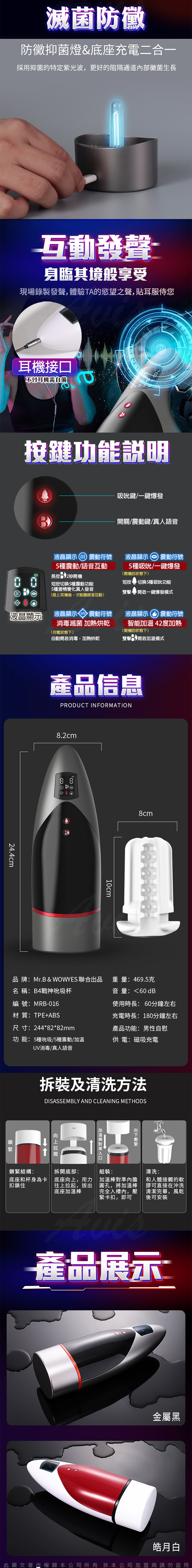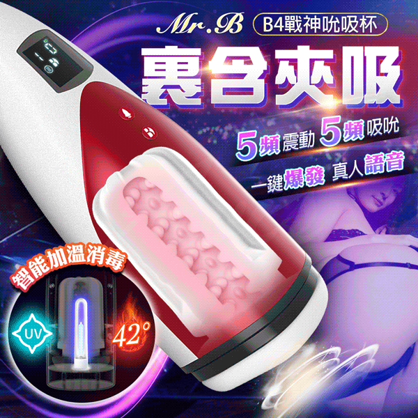 Mr.B B4戰神杯 5種吸吮x5頻震動智能加溫語音自慰杯(具有UV消毒)