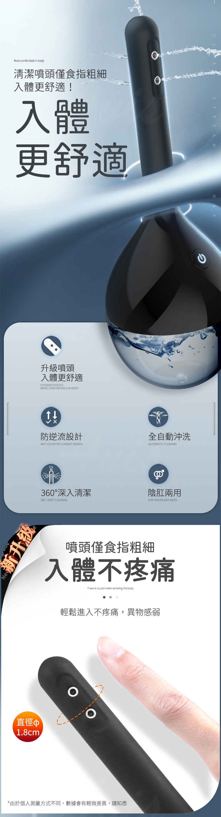 適合不同程度的清潔需求,和水流保護嬌嫩直腸壁。